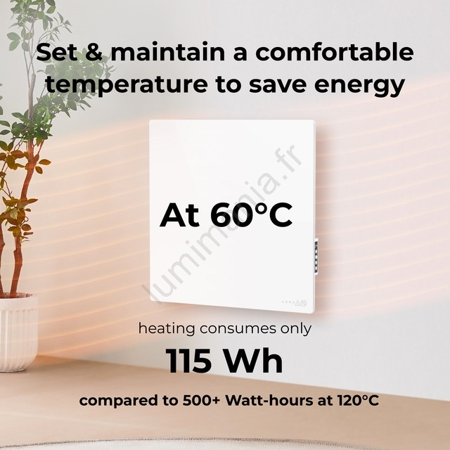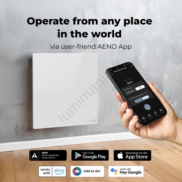 • Avec l'application AENO, vous pouvez piloter votre chauffage depuis n'importe où, suivre la consommation énergétique et économiser jusqu'à 50 %.