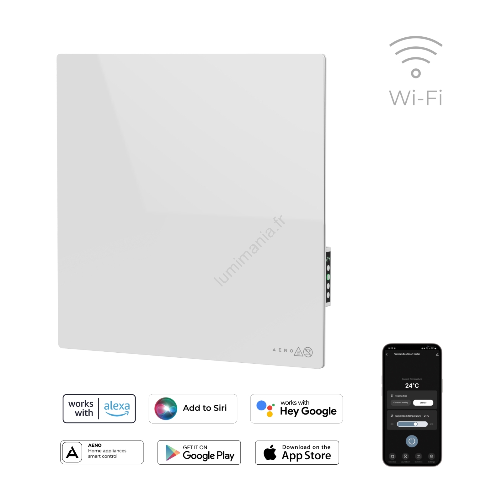 AENO - Panneau infrarouge électrique intelligent 500 W minuterie/thermostat Wi‑Fi blanc