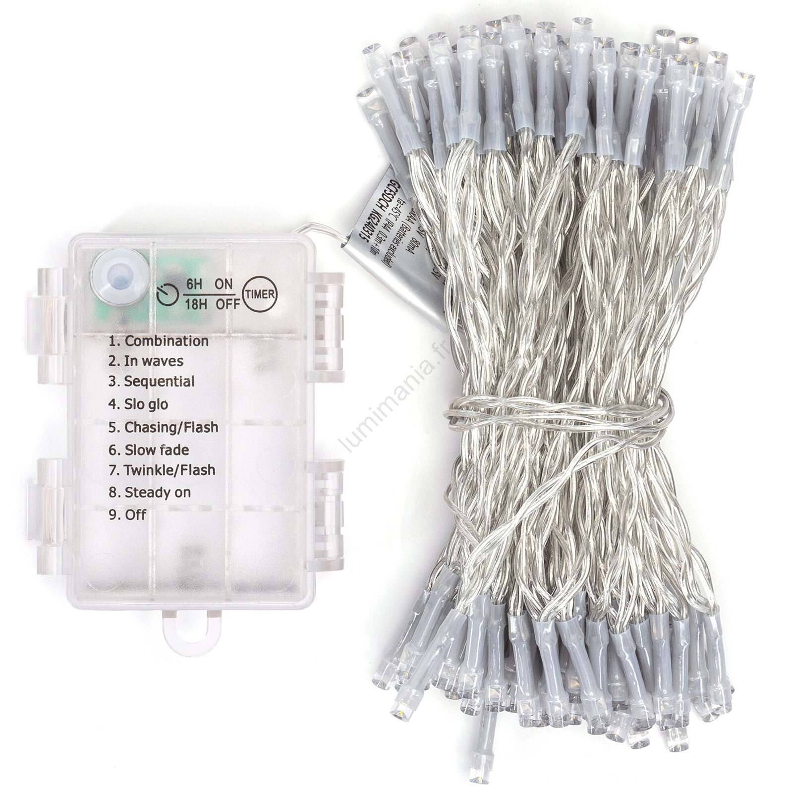Aigostar - Guirlande lumineuse LED d'extérieur 100 LED/8 fonctions/3 piles AA 10,3 m IP44 blanc froid