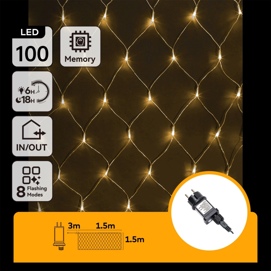 Aigostar - Guirlande de Noël LED d'extérieur 100xLED/8 fonctions 4,5x1,5m IP44 blanc chaud