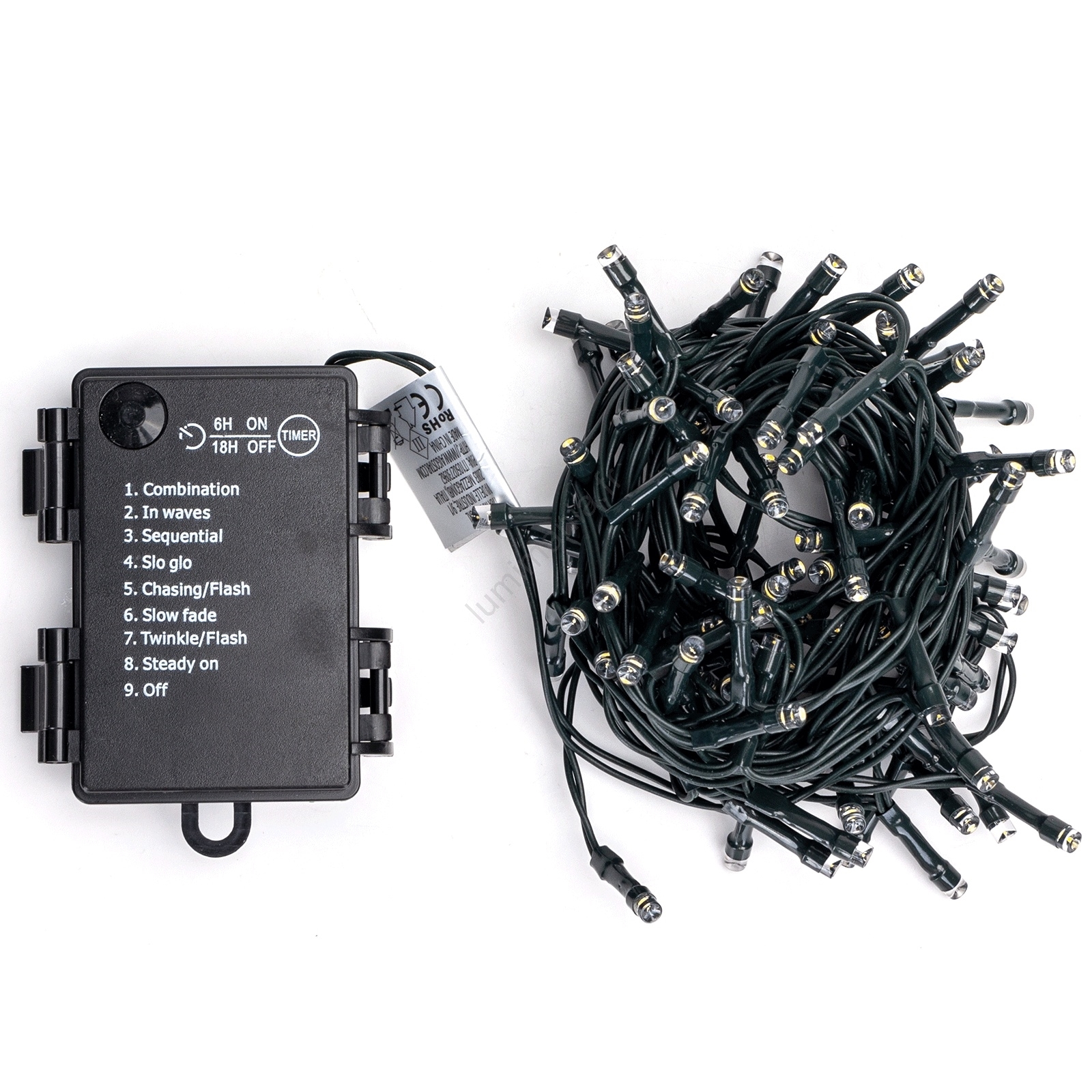 • Aigostar - Guirlande lumineuse LED extérieure 100 LED/8 fonctions 3xAA 5,3 m IP44 blanc froid