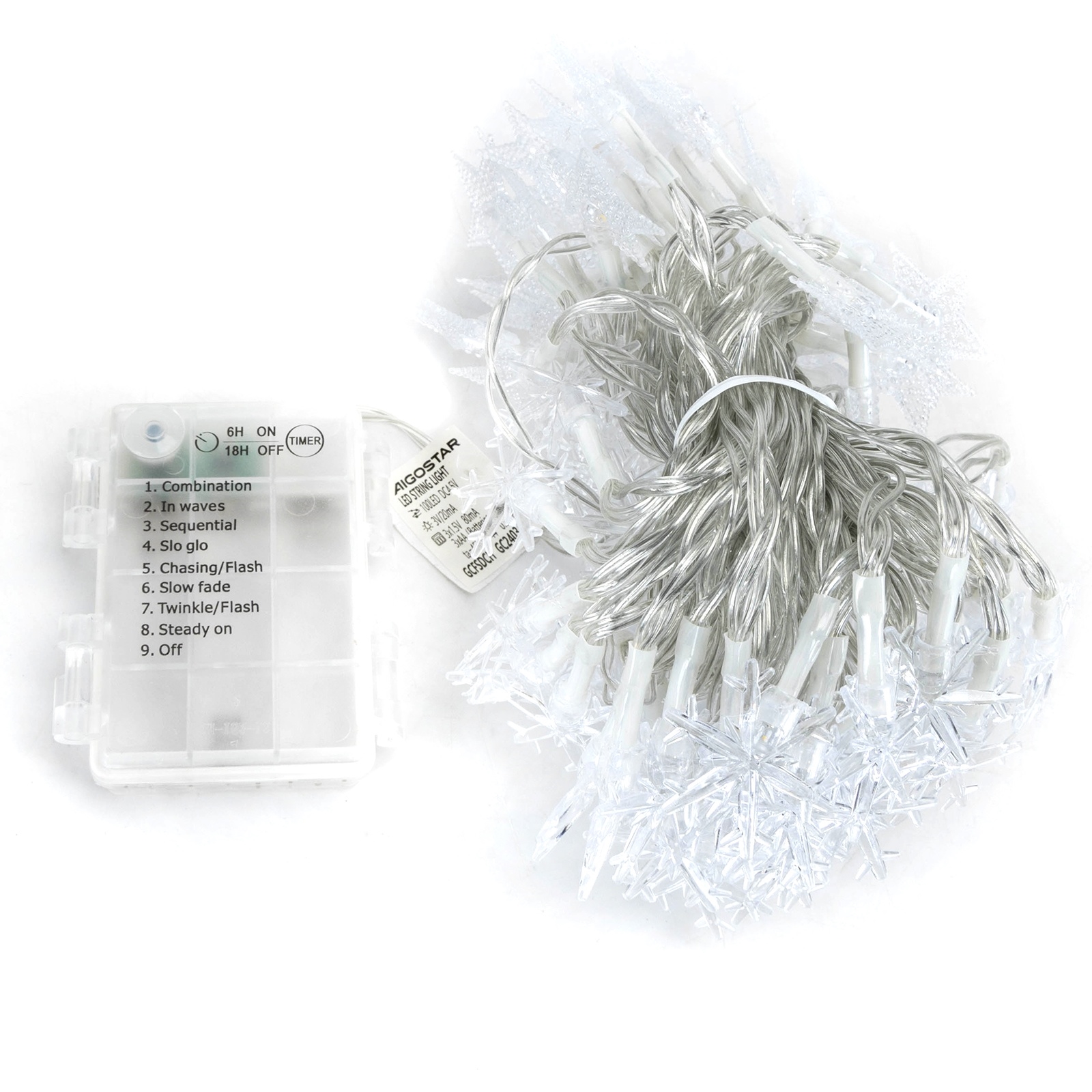 Aigostar - Guirlande lumineuse LED d'extérieur 100 LED / 8 fonctions, 3 piles AA, 10 m, IP44, blanc chaud, motif étoiles