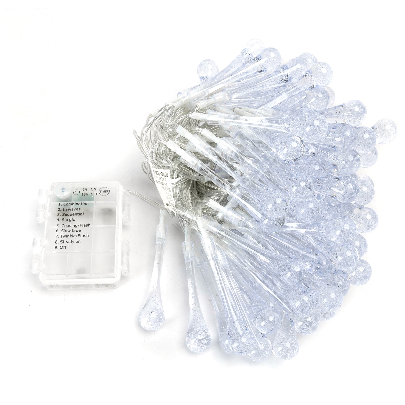 Aigostar - Guirlande de Noël LED extérieure, 100 LED, 8 modes, 3x AA, 10 m, IP44, gouttes multicolores