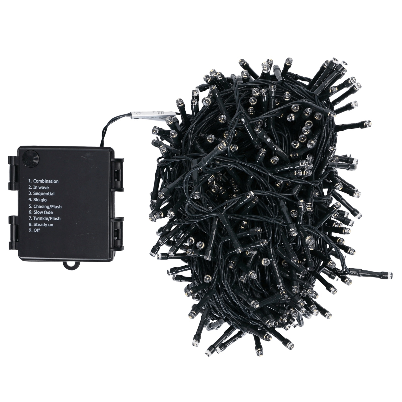 Aigostar - Guirlande lumineuse LED extérieure de Noël, 500 LED / 8 fonctions, 4xAA, 25,3 m, IP44, blanc chaud