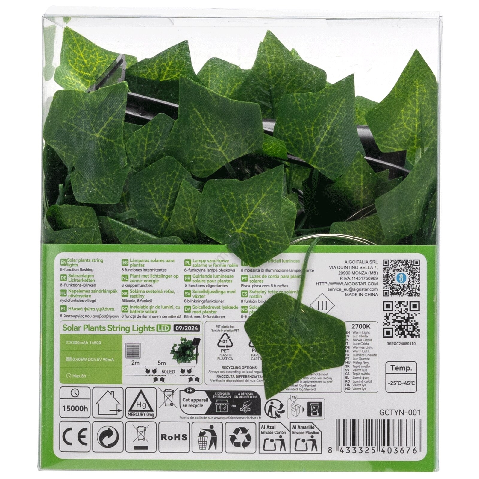 Aigostar - Guirlande solaire LED 50xLED/7m IP65 300 mAh blanc chaud lierre