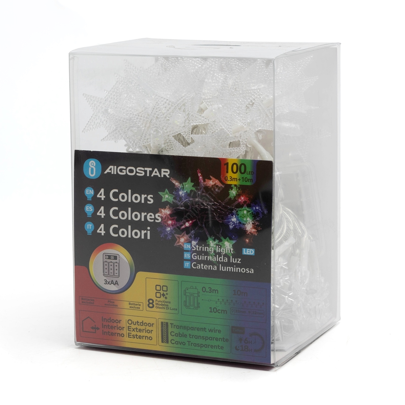 Aigostar - LED RGBY Guirlande de Noël extérieure 100xLED/8 fonctions 3xAA 10m IP44 étoiles