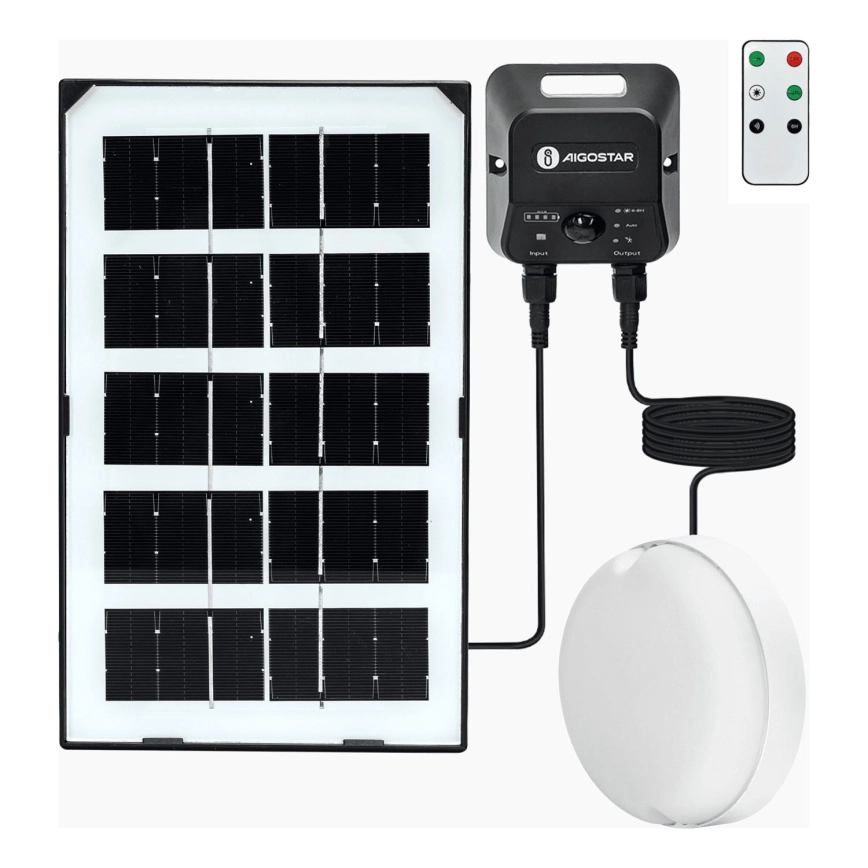 Aigostar - Plafonnier solaire LED à capteur — 35 W / 3,7 V / 3000 mAh / IP65 + télécommande