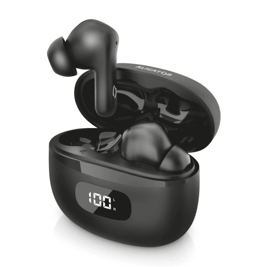 Aligator TWS08BK - Écouteurs sans fil avec ANC, 200 mAh + 2x 30 mAh, IP40, noirs