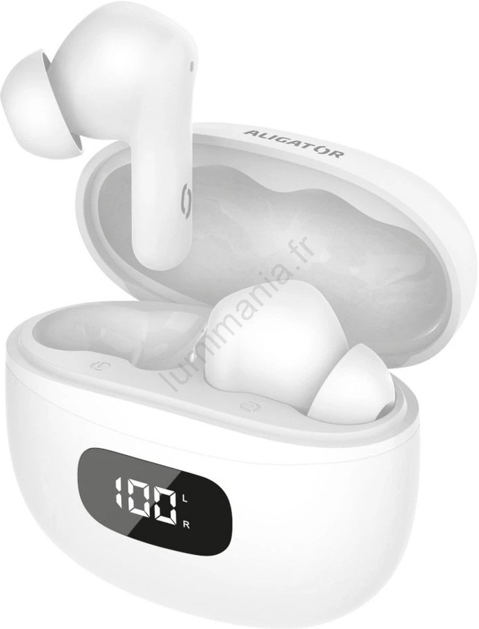 Aligator TWS08WT - Écouteurs sans fil avec ANC (réduction active du bruit), capacité de batterie 200 mAh + 2x 30 mAh, IP40, blanc