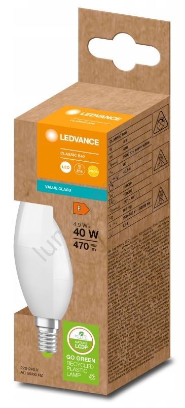Ampoule en plastique recyclé B40 E14/4,9W/230V 2700K - Ledvance