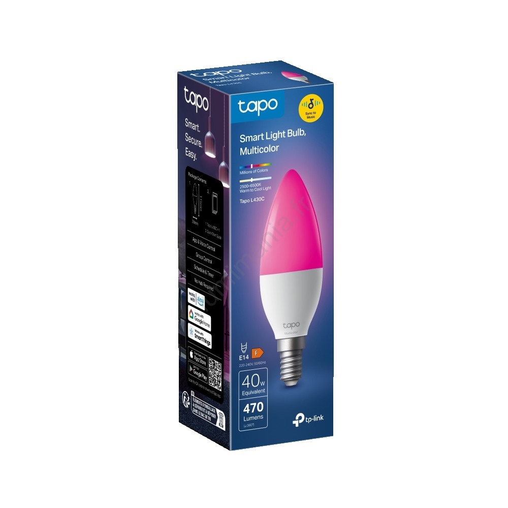 • L'ampoule LED intelligente TP-Link Tapo L430C est une ampoule multicolore au culot E14, pilotable via Wi‑Fi avec l'application Tapo.