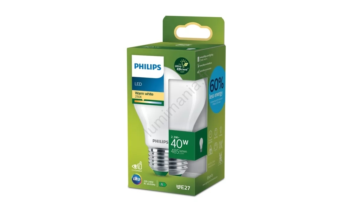 • Ampoule LED ULTRAEFFICIENT Philips A60 E27/2,3W/230V 2700K