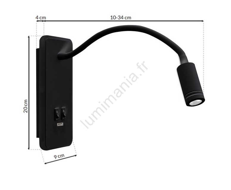 • Applique murale LED flexible avec port USB BASE LED/8W+LED/2W/230V, noire