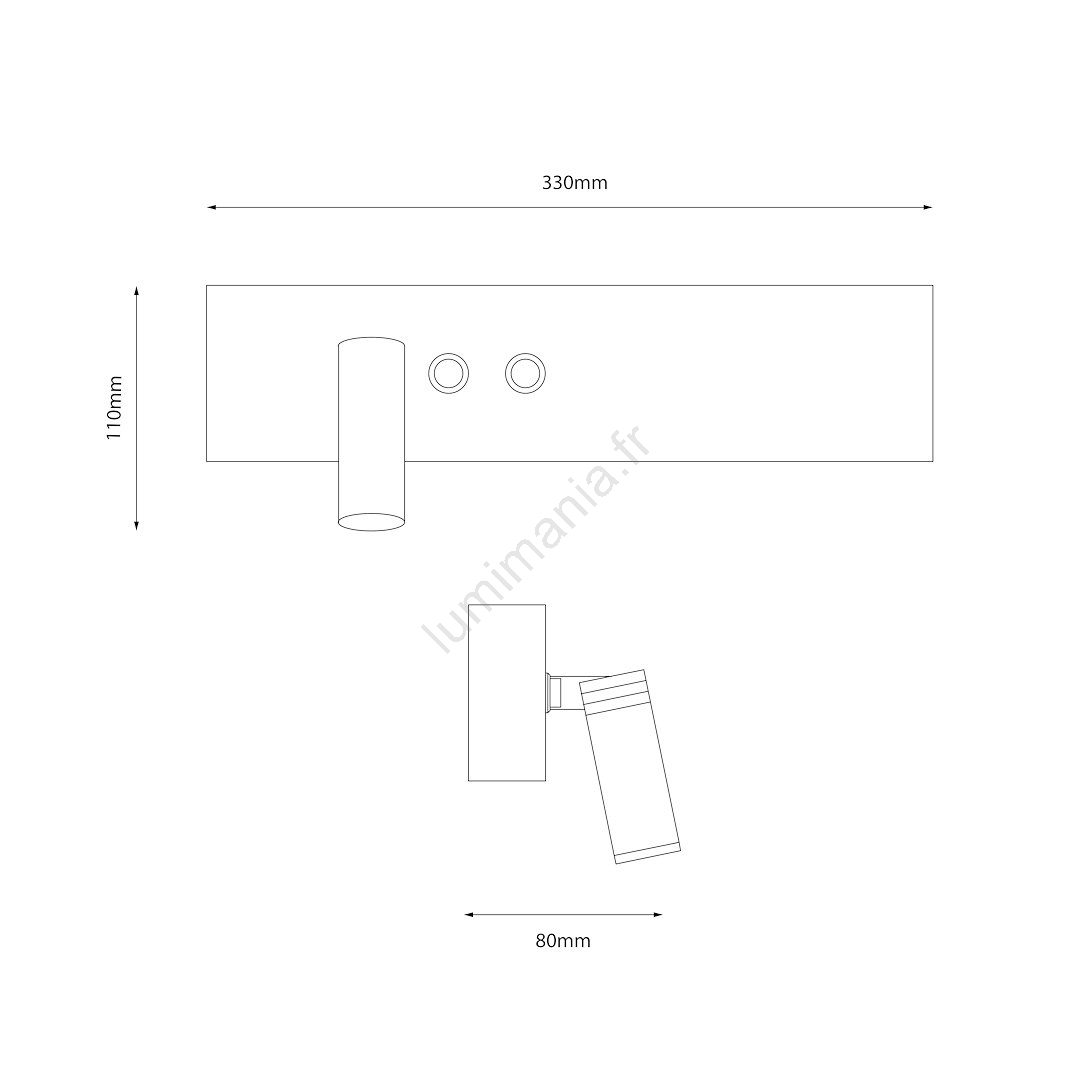 • Applique murale spot RESORT LED/10W/230V + LED/3W, noire, côté droit