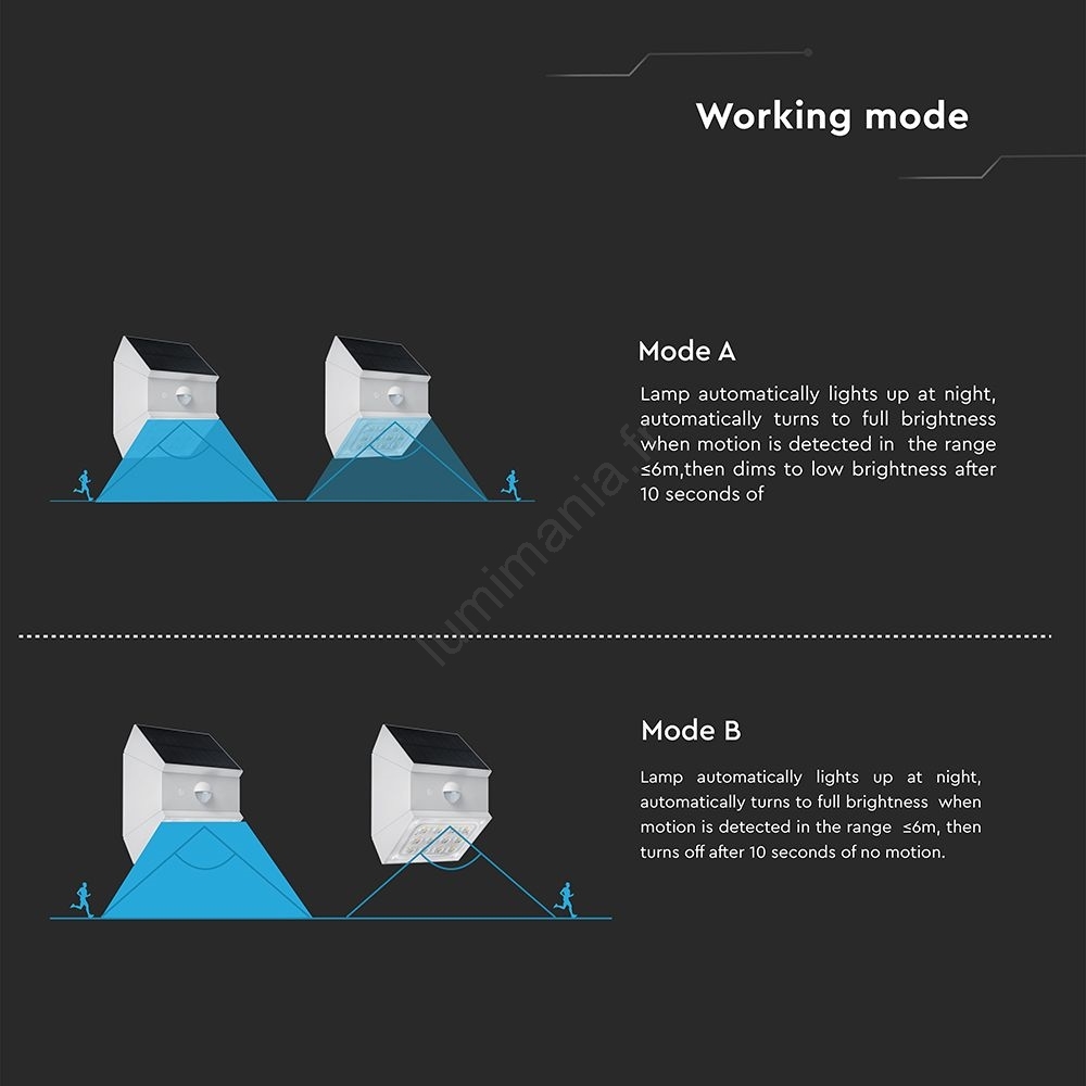• Luminaire solaire équipé de LED SMD à haute efficacité.