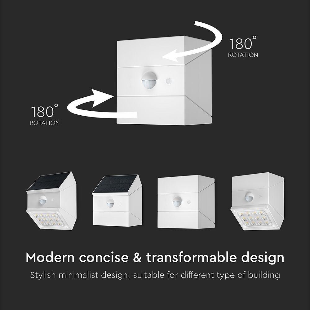 Applique solaire murale LED à capteur LED/2,5W/3,7V 3000/4000/6000K IP65 1200 mAh blanc