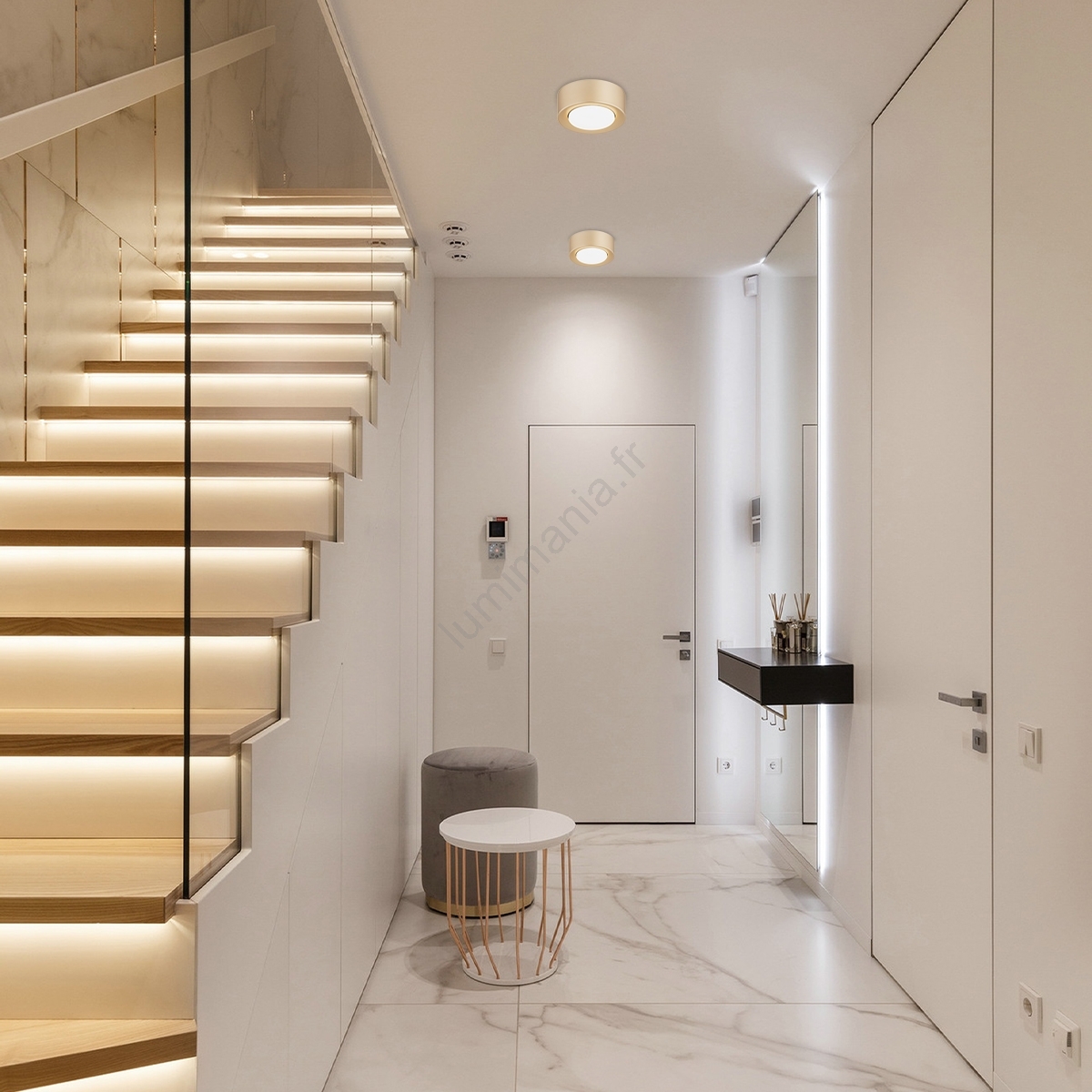 Argon 8903 - Plafonnier ELORA 1xGX53/7W/230V Ø 11 cm doré caractérise un design agréable et fonctionnel.  Une ampoule à culot GX53 convient pour ce luminaire. Ici, vous pouvez acheter d'autres ampoules à des prix avantageux. Vous aurez un ajout intéressant dans votre intérieur.