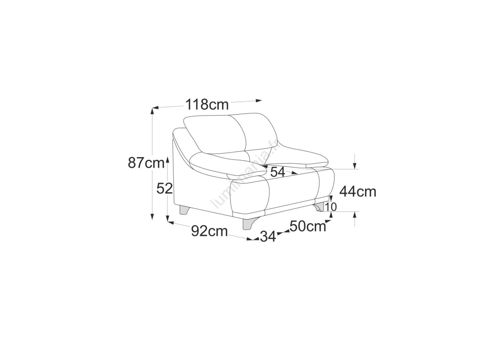 • Avec une hauteur de 86 cm, une hauteur d'assise de 43 cm et une profondeur de 54 cm, il offre une assise ergonomique et détendue.