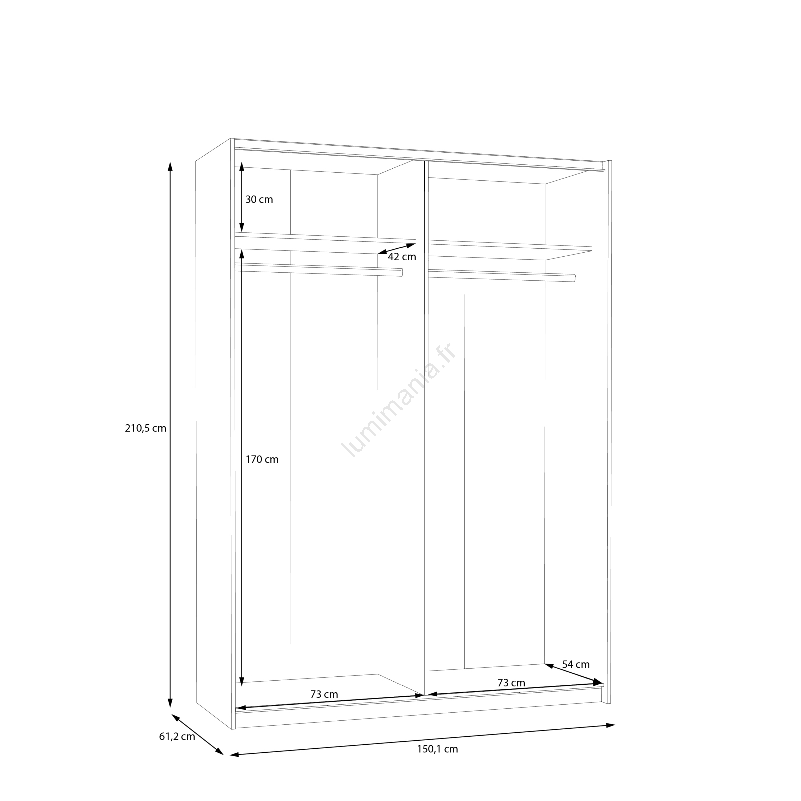 • Des étagères intérieures supplémentaires sont disponibles à l'achat ici:  Lot de 3 étagères 72,7 x 42 cm.