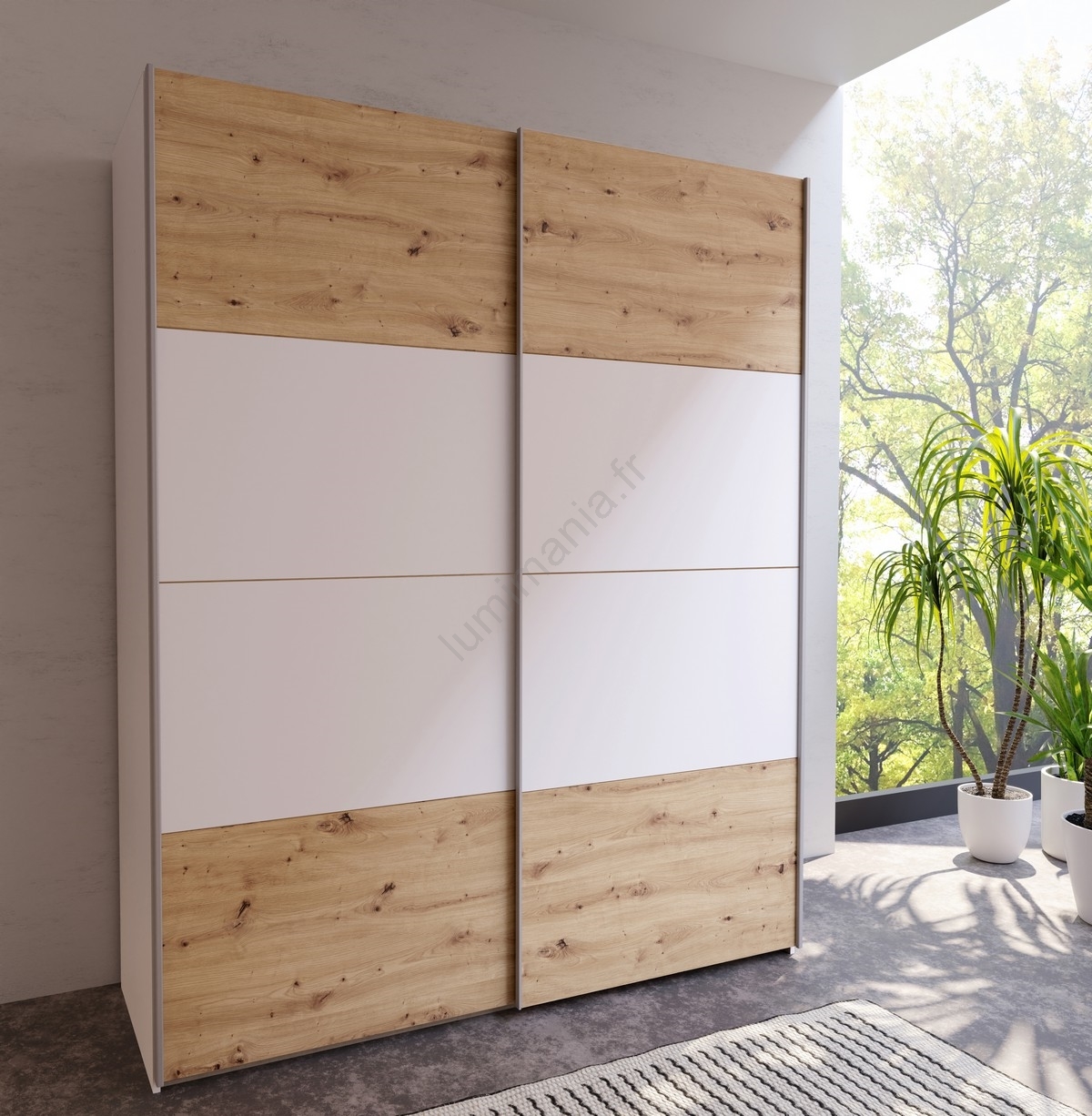 • Armoire KARO 170x210 cm blanche/chêne artisan