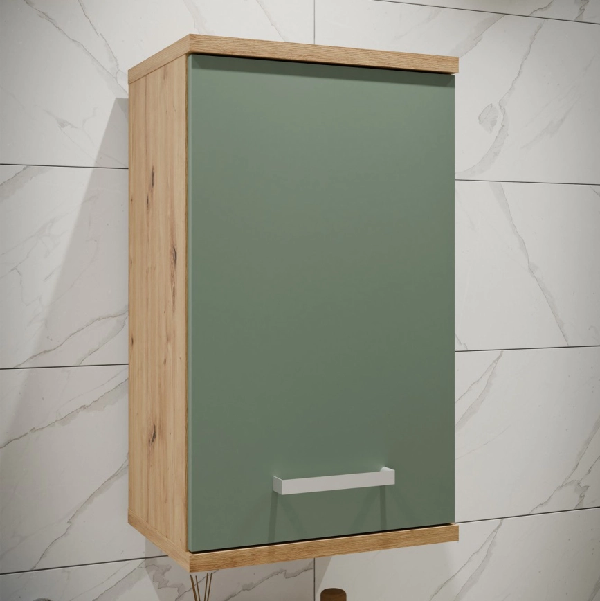 Meuble de salle de bains mural VENOM vert/chêne artisan