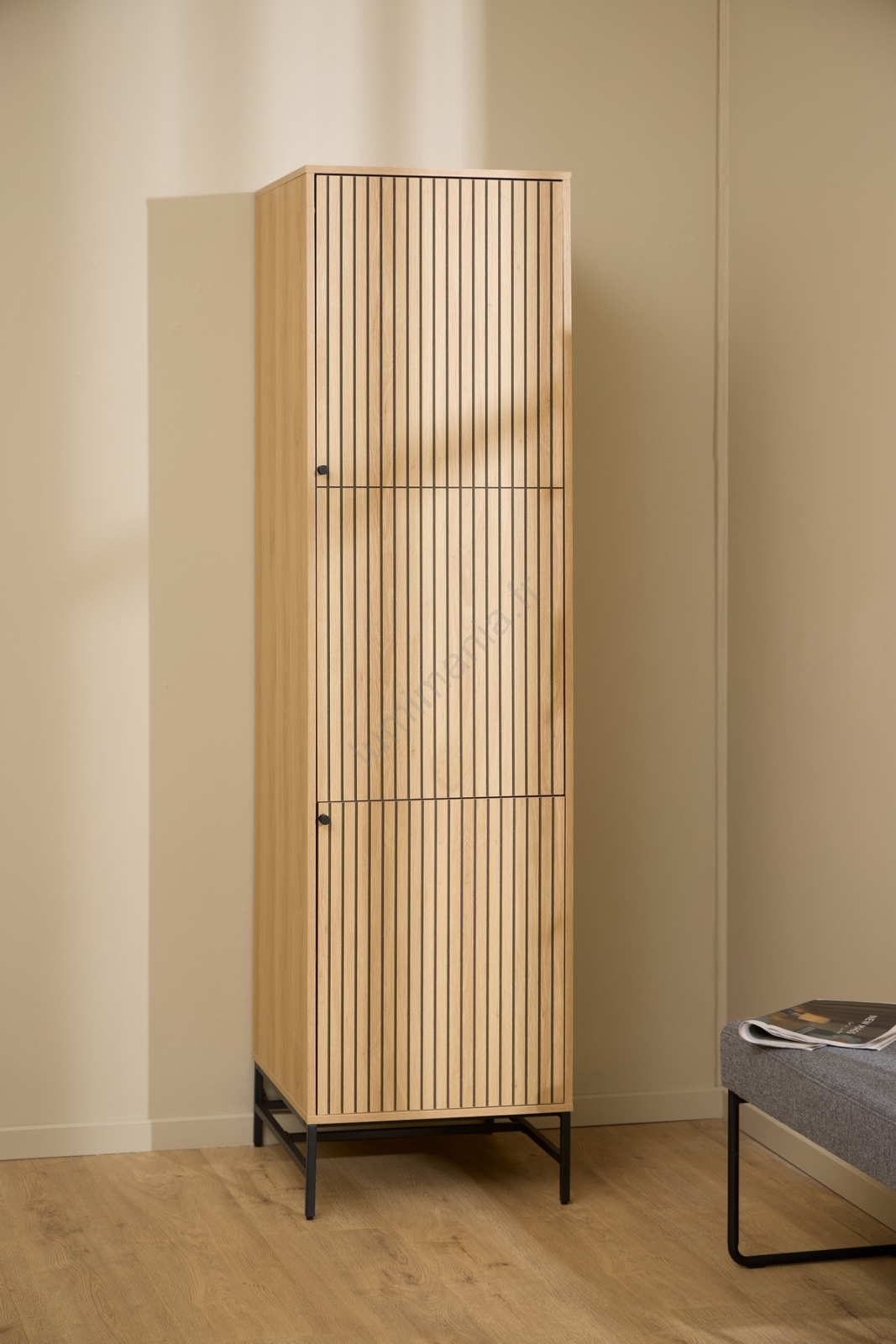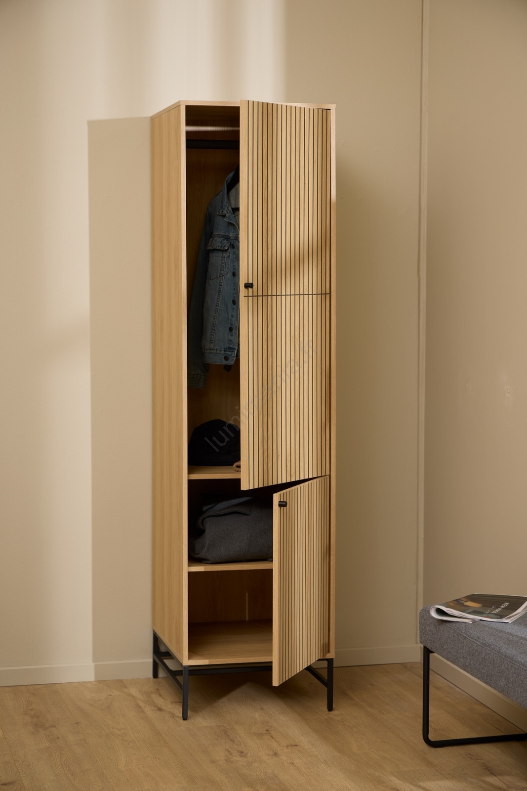 • Cette armoire au décor chêne, dotée d'une façade à lames, apportera style et praticité à votre intérieur.