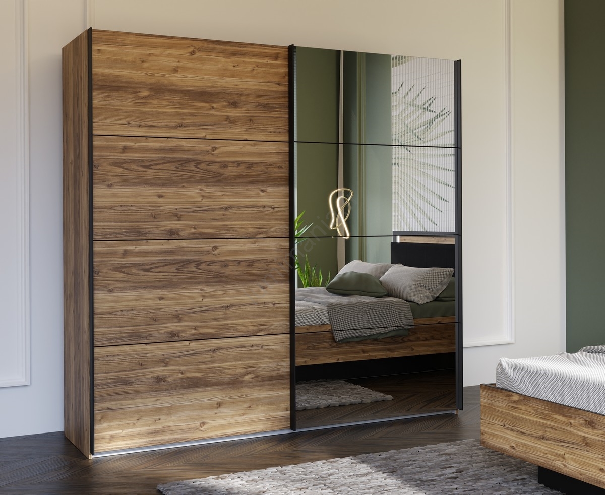 • Armoire avec miroir OREN 220x210 cm chêne artisan