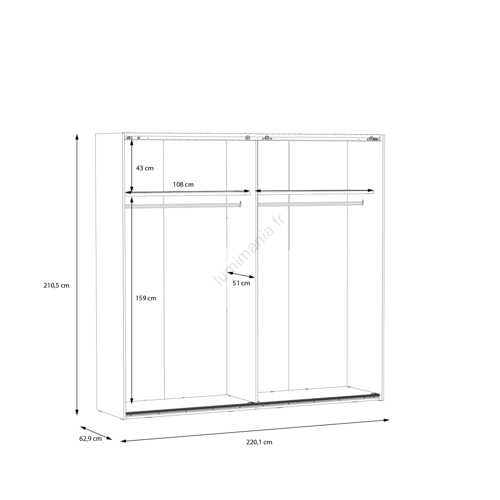 • L'armoire est équipée de tringles, d'étagères et d'un vaste espace de rangement pour vos vêtements, sacs et articles saisonniers.