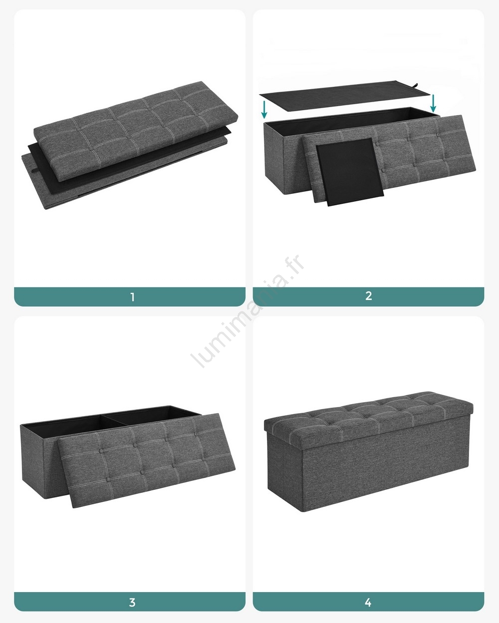 • Elle offre un volume de rangement (120 l) pour ranger vêtements, jouets, plaids et autres objets.