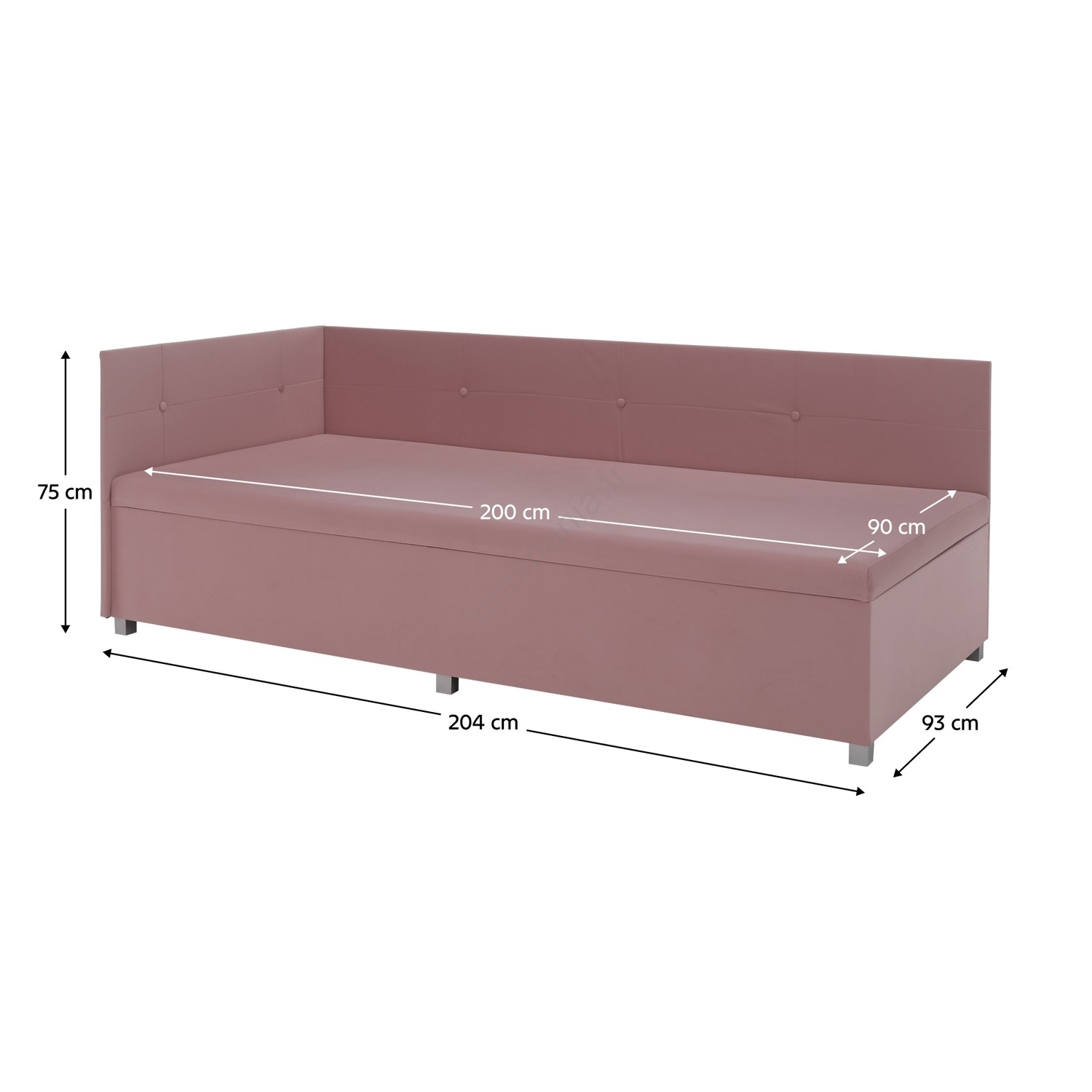 Lit coffre rembourré AMSTERDAM 90 x 200 cm avec tête réversible et grand espace de rangement, rose