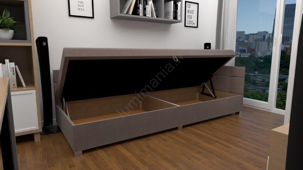 • Offre un grand espace de rangement sous l'assise, avec un mécanisme d'ouverture latéral pratique, pour le rangement de la literie.