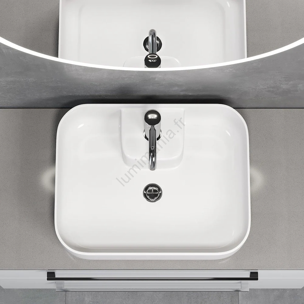 • Conçu pour une installation sur plan de toilette, il offre une grande flexibilité d'agencement et se combine aisément avec différents types de plans de salle de bains.