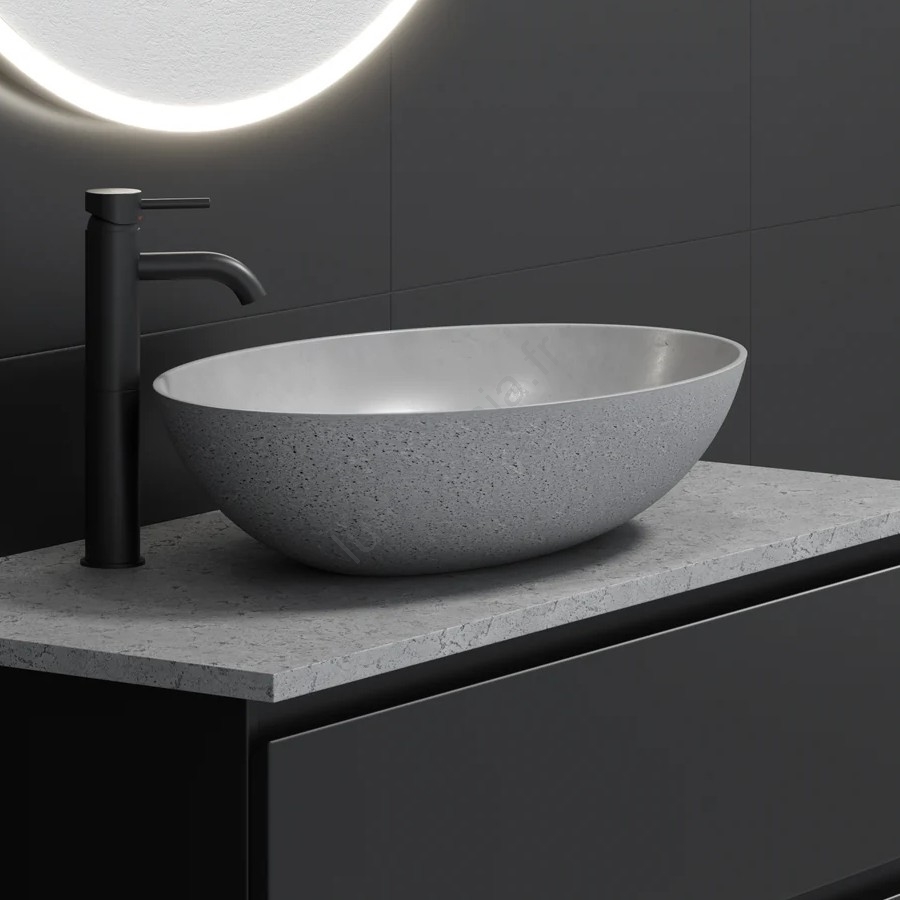 • Fabriquée en béton 100% naturel, avec un traitement de surface qui protège la vasque contre l'absorption d'eau.