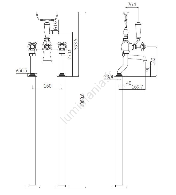 • Robinet à deux manettes pour un réglage aisé de la température et du débit d'eau.
