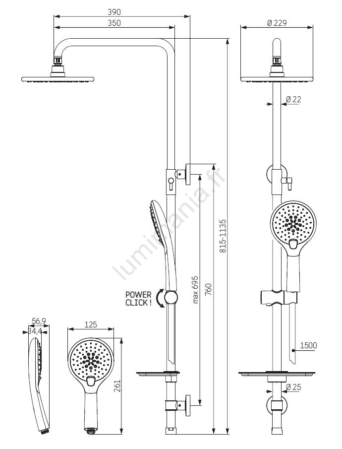 • La tête de douche et la douchette sont équipées de buses anti-calcaire.