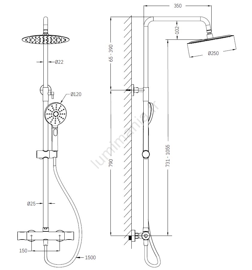 • L'ensemble comprend un mitigeur thermostatique en laiton massif.