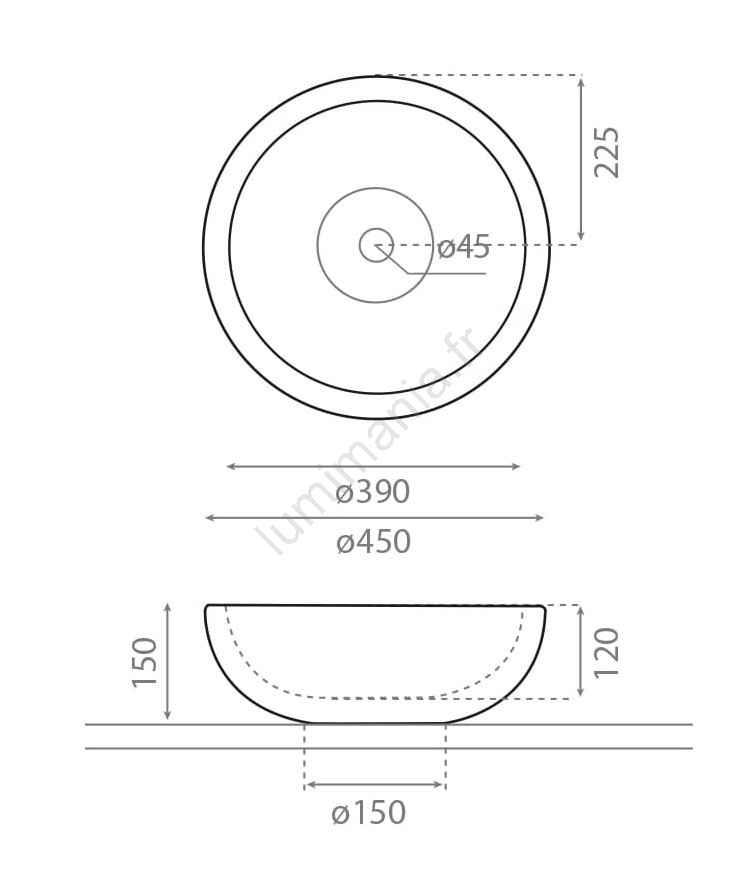 • Bathco 00317 - Lavabo à poser PUKET Ø 45 cm aspect pierre / gris