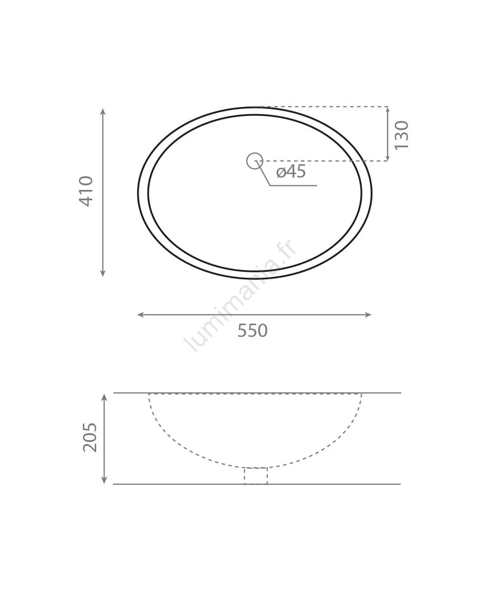 • Sans trou pour robinet.