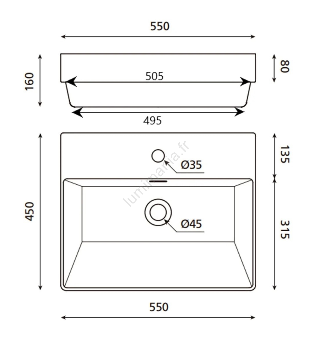 • Le colis comprend le lavabo sans siphon ni robinet.