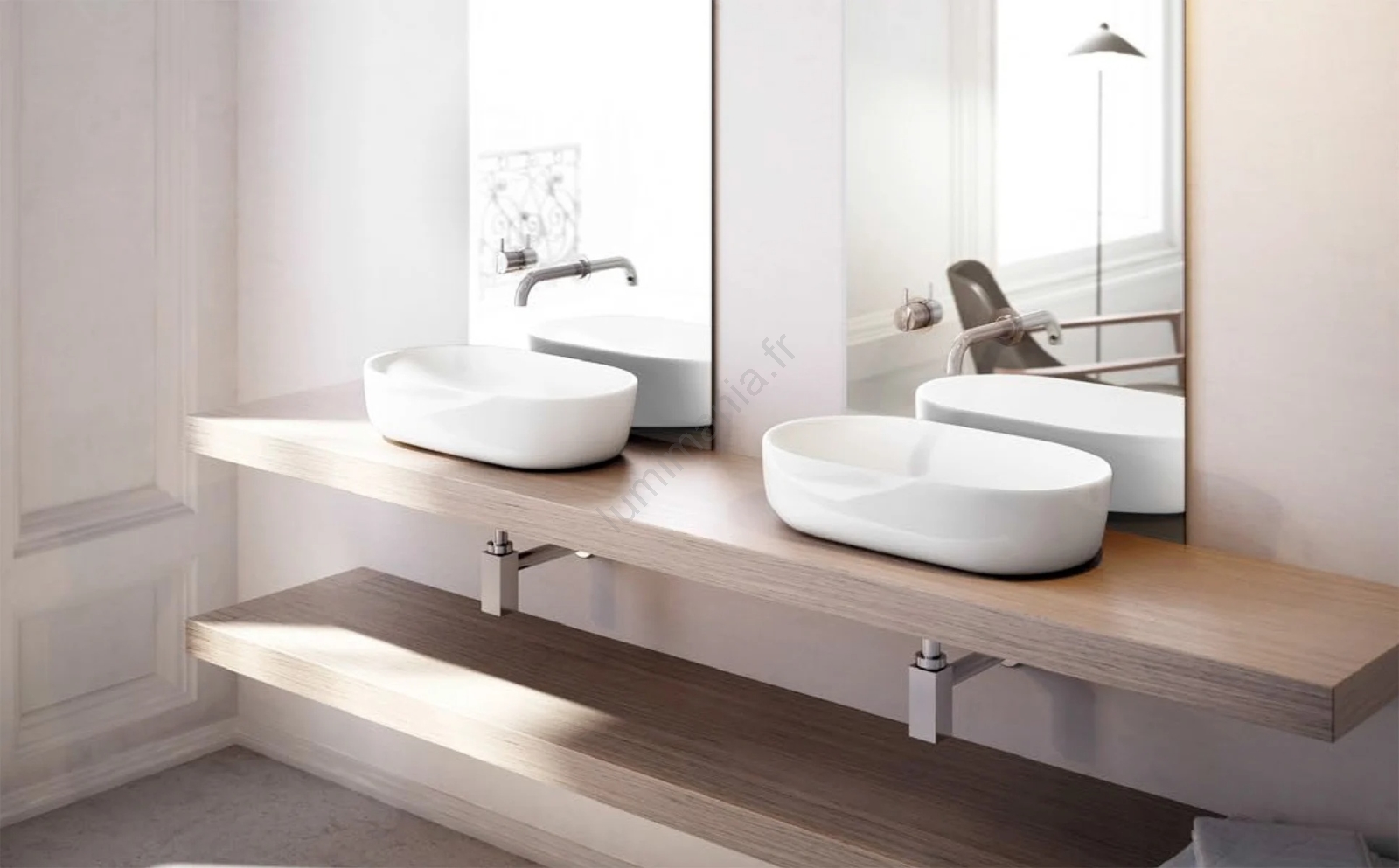 • Le lavabo peut être installé en pose sur plan.