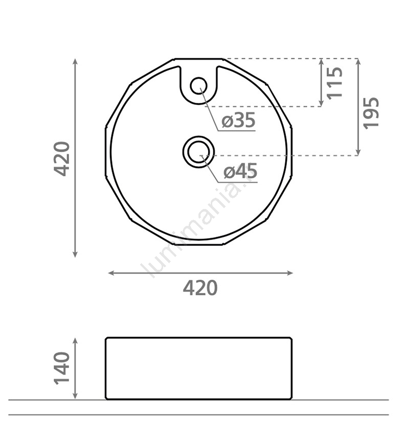 Bathco 4158 - Lavabo à poser CIRCUS diam. 42 cm porcelaine/blanc
