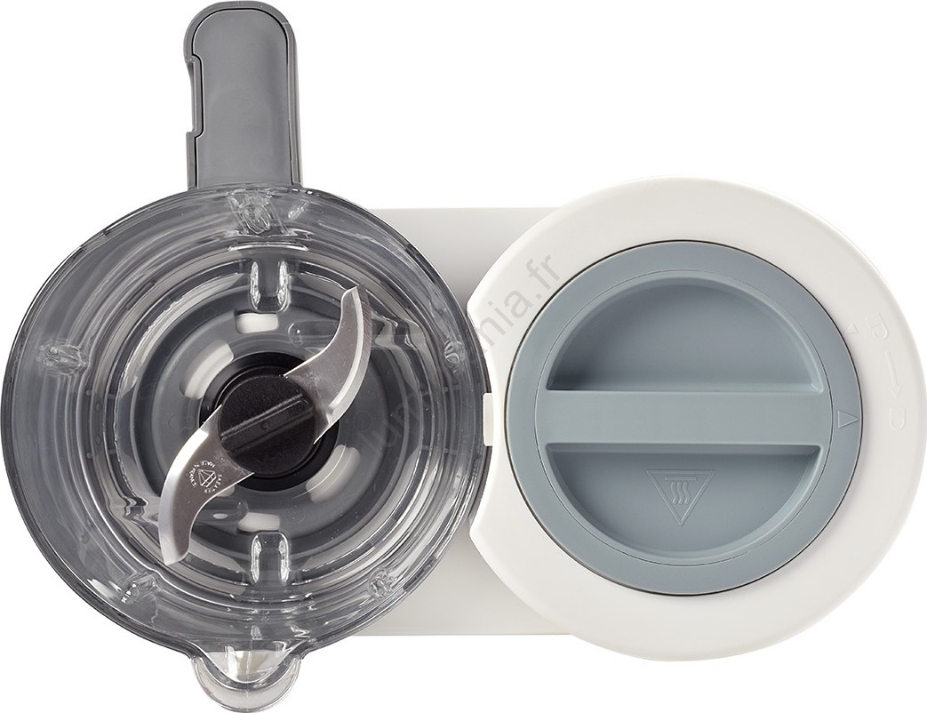 • Si vous souhaitez ensuite mixer les aliments, il vous suffit de vider les ingrédients cuits du panier dans le récipient principal transparent et de les mixer (en fonction de l'âge de l'enfant, pour obtenir une bouillie fine et lisse ou une texture plus grossière avec des morceaux).