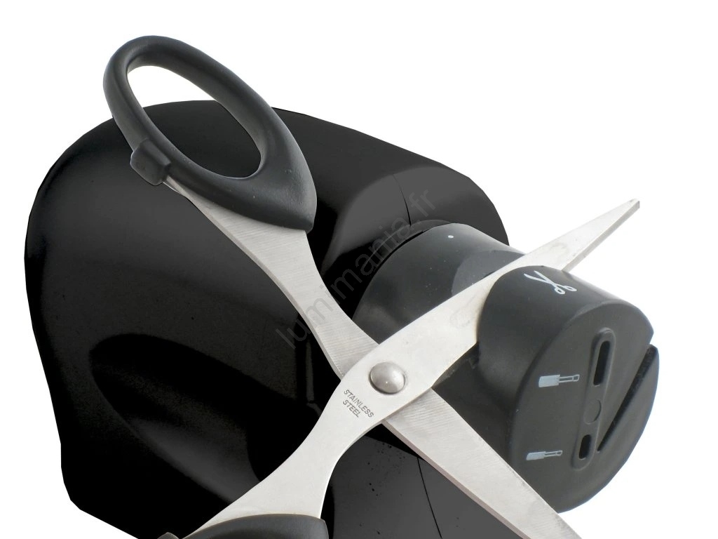 • L'affûteur électrique compact convient pour affûter les couteaux à lame dentelée et lisse, les ciseaux et les tournevis à tête plate.