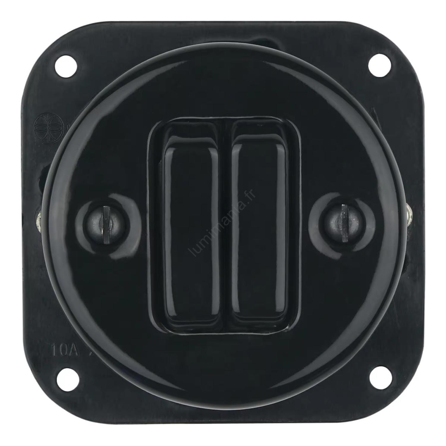 Bohemia-Design - Interrupteur double rétro en porcelaine sans cadre n° 6+6 noir