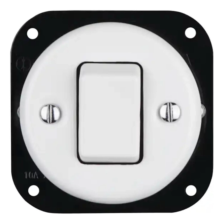 Bohemia-Design - Interrupteur simple rétro en porcelaine sans cadre n° 7 blanc