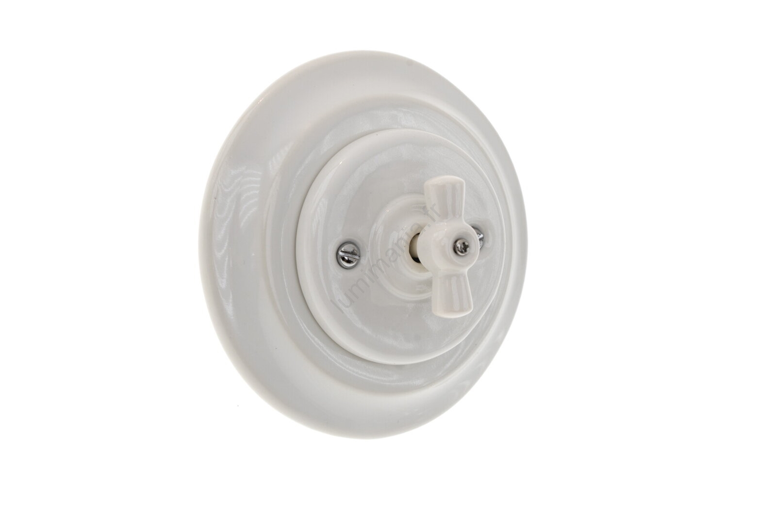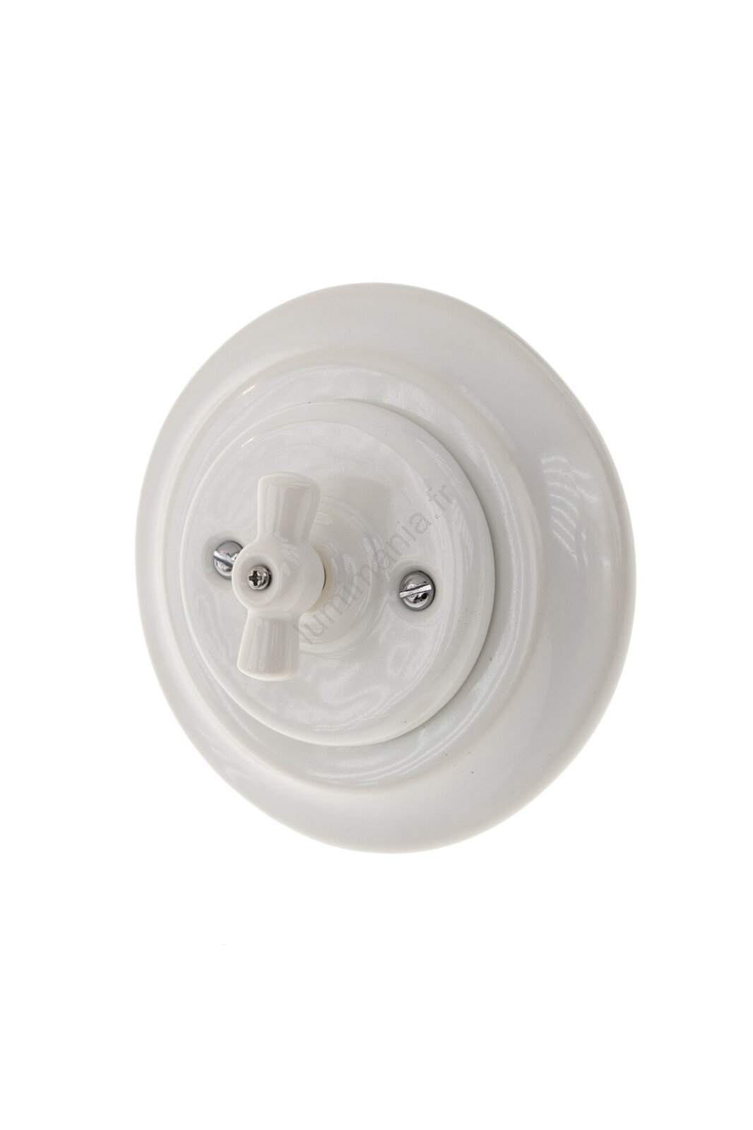 Bohemia-Design - Interrupteur rotatif rétro en porcelaine avec plaque n° 7, blanc