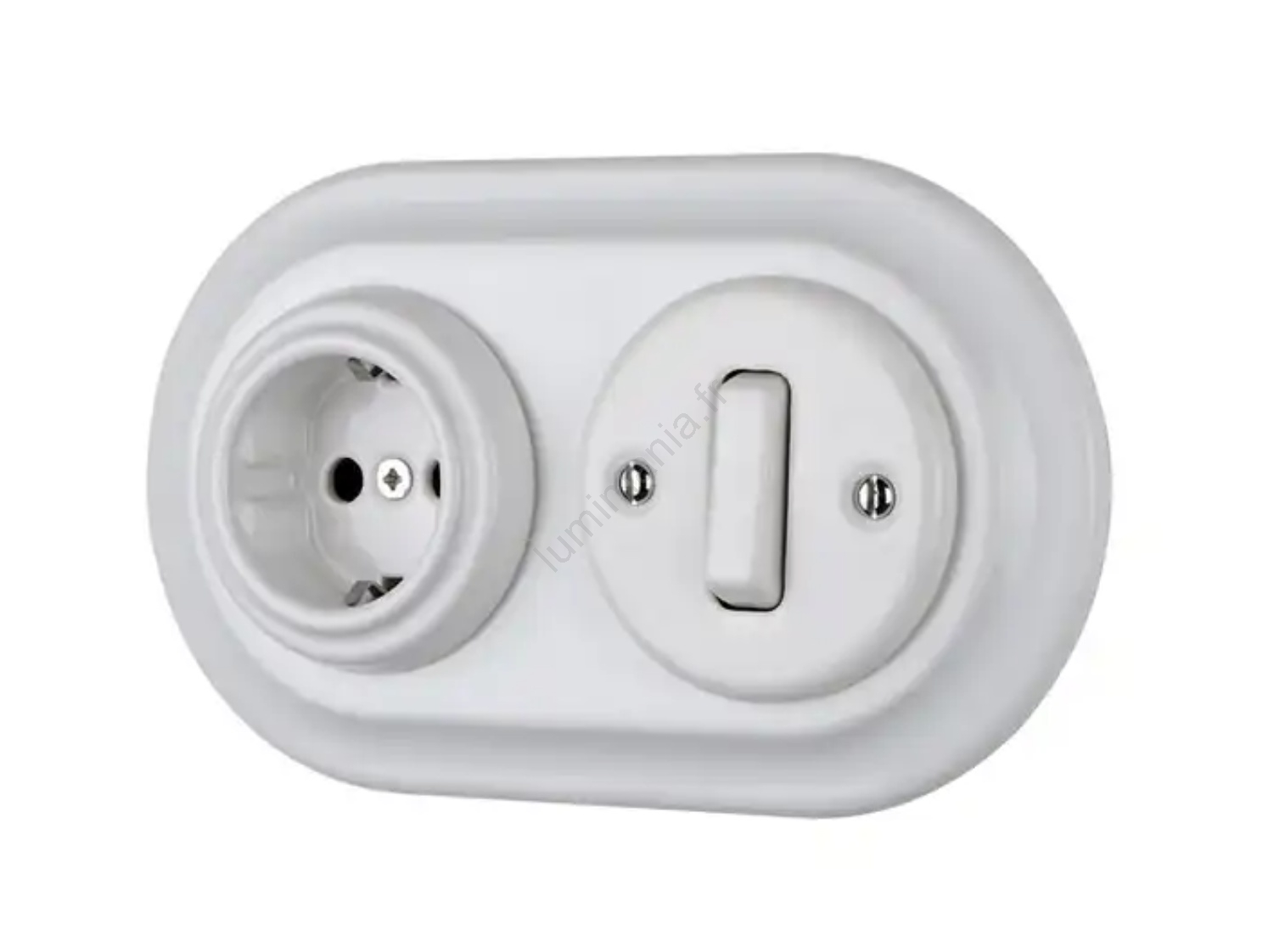 Bohemia-Design - Prise murale rétro en porcelaine sans cadre 250 V/16 A blanche