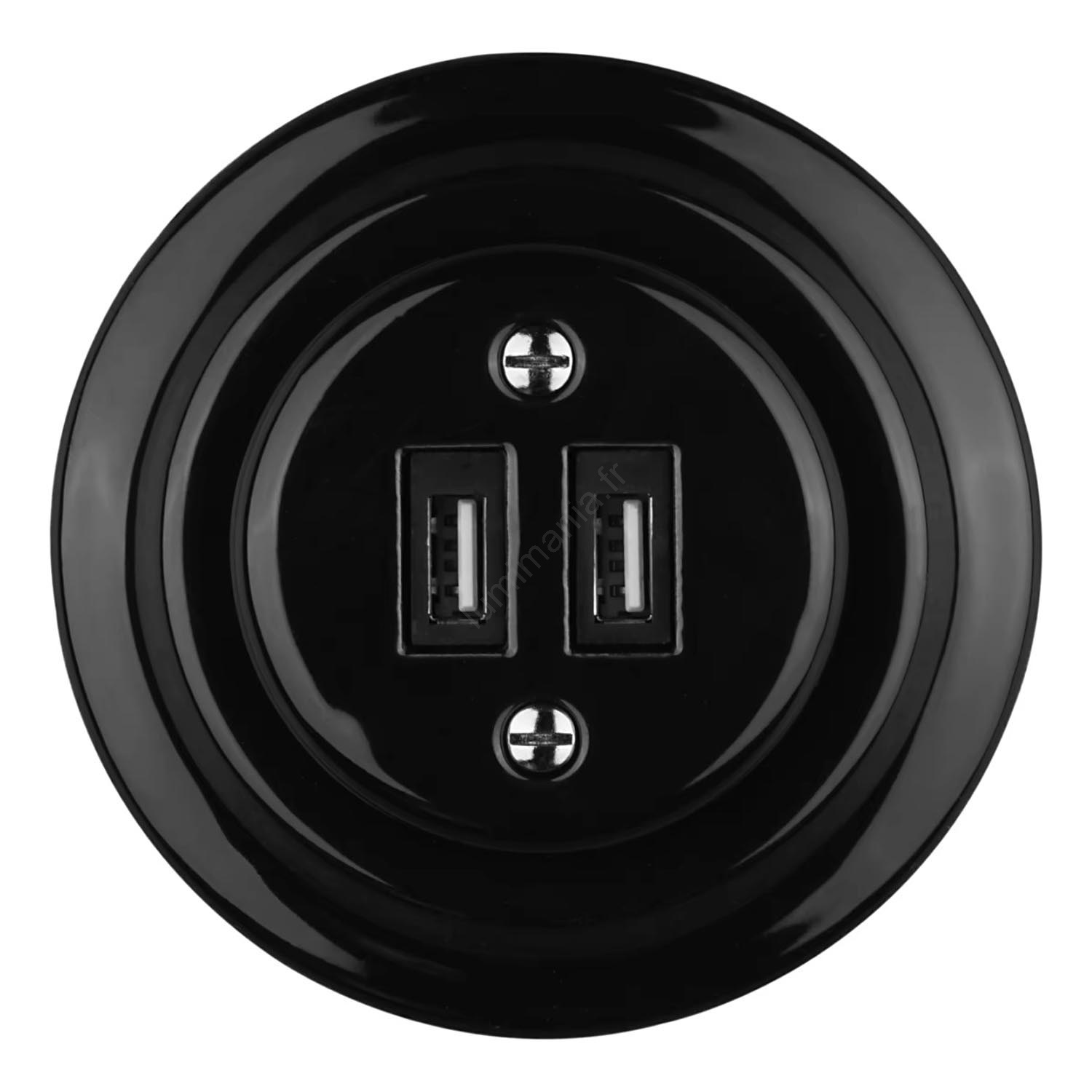Bohemia-Design - Prise murale USB rétro en porcelaine avec cadre, 2 ports USB-A, noire