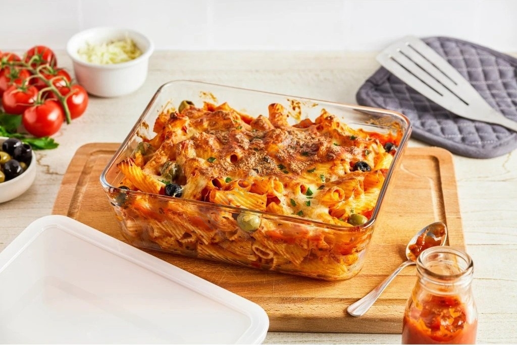 • Sa forme rectangulaire optimise l'espace dans le four ou le réfrigérateur, et son couvercle prolonge la fraîcheur de vos préparations.