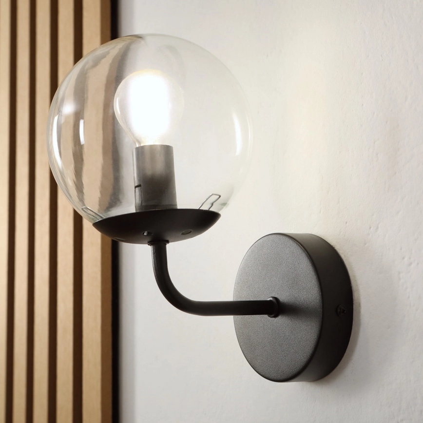 Brilagi - Applique murale MALIVA 1xE14/15W/230V noir/transparent caractérise un design agréable et fonctionnel.  Une ampoule à culot E14 convient pour ce luminaire. Ici, vous pouvez acheter d'autres ampoules à des prix avantageux. Vous aurez un ajout intéressant dans votre intérieur.